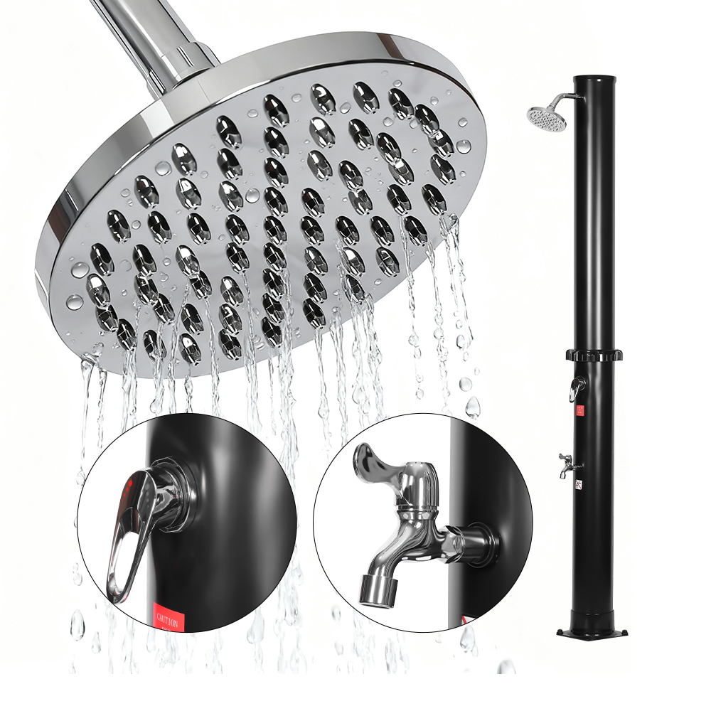 Ovaj vanjski vrtni solarni tuš LY35L01 s cijevi za tuširanje velikog kapaciteta dizajniran je za obiteljsku vanjsku upotrebu, a sadrži veliku tuš cijev koja može zagrijati vodu na oko 60°C na jakom suncu bez potrebe za električnom energijom. Jednostavno priključite standardno vrtno crijevo za punjenje tuš cijevi i svatko može uživati u osvježavajućem tušu u vrtu, uz bazen ili u kampu. Za dodatnu praktičnost uključuje ugrađenu metalnu ladicu za držanje gela za tuširanje ili drugih malih predmeta na dohvat ruke, dok drenažni otvor na dnu osigurava nesmetan protok vode i sprječava stajanje vode. Kada se ne koristi, tuš se može lako rastaviti radi kompaktnog skladištenja, što ga čini praktičnim za sezonsku upotrebu ili transport na različita mjesta.