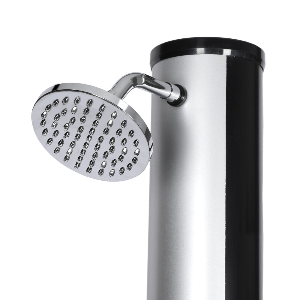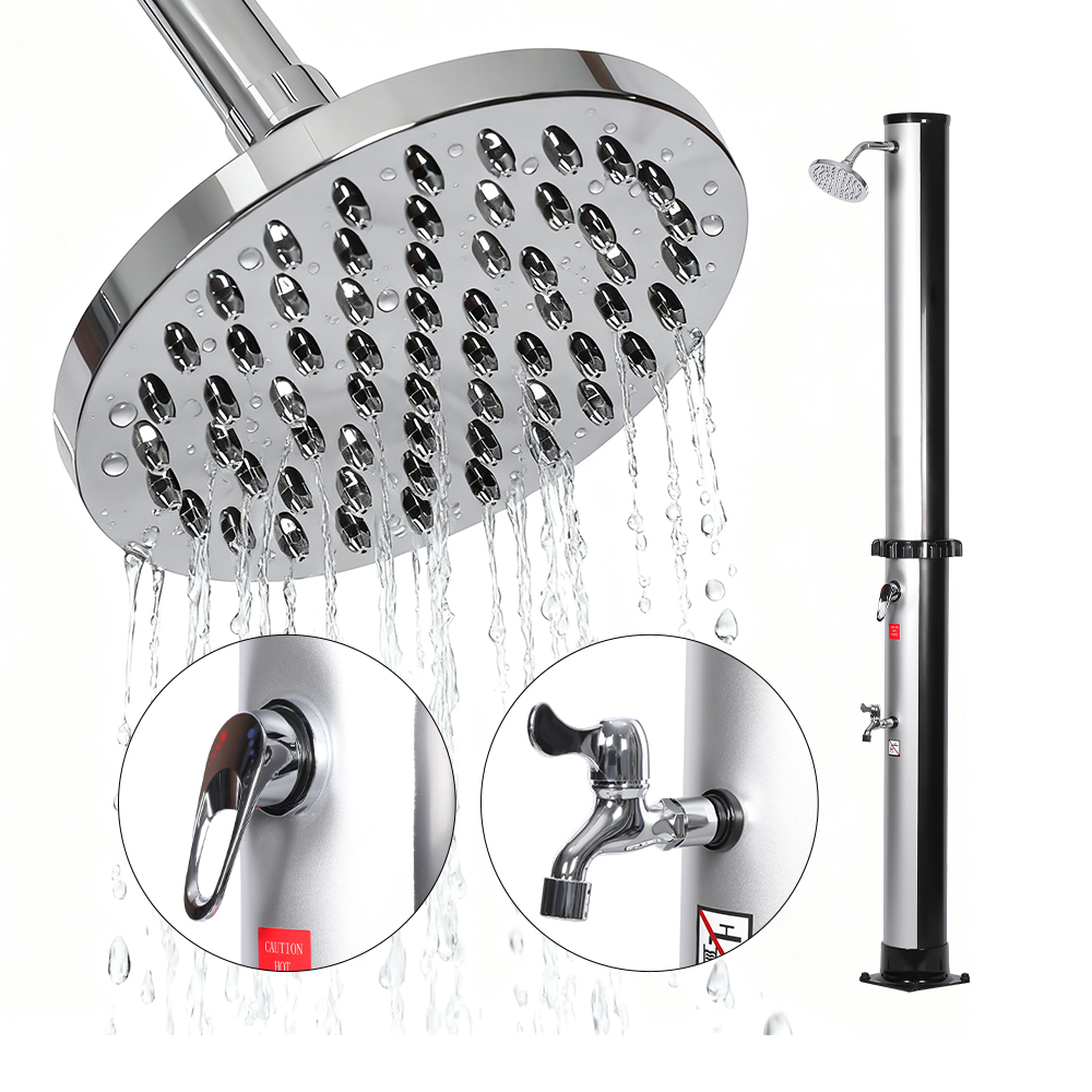Ovaj podesivi i vodootporni solarni tuš LY35L02-CR kombinira praktičnost s udobnošću, a sadrži veliku cijev tuša koja se zagrijava do oko 60°C koristeći samo sunčevu svjetlost, eliminirajući potrebu za električnom energijom. Jednostavno pričvrstite obično vrtno crijevo za punjenje cijevi za tuširanje, olakšavajući cijeloj obitelji uživanje u osvježavajućem vanjskom tušu u vrtu, uz bazen ili za vrijeme kampiranja. Praktični metalni pladanj drži bitne potrepštine za kupanje poput sapuna ili šampona nadohvat ruke, dok promišljeno dizajniran odvodni kanal na dnu sprječava nakupljanje vode, održavajući prostor čistim i sigurnim. Kao dodatak udobnosti, podesiva glava tuša omogućuje fleksibilnu kontrolu vodenog mlaza, omogućujući vam da protok prilagodite svojim osobnim željama. Njegov raspršivač u stilu prašume pruža umirujuće, prirodno iskustvo tuširanja, pretvarajući svako ispiranje u trenutak opuštanja.