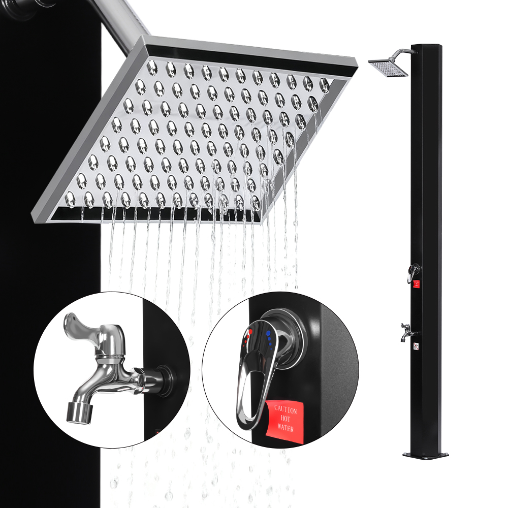 Sa svojom velikom cijevi za tuširanje, ovaj praktični solarni tuš protiv nakupljanja vode LY35L05-SS učinkovito zagrijava vodu do 60°C pod punom sunčevom svjetlošću, eliminirajući potrebu za električnom energijom i čineći ga idealnim za održivu vanjsku upotrebu. Jednostavno spojite standardno vrtno crijevo za punjenje tuš cijevi i cijela obitelj može uživati u osvježavajućem i ugodnom iskustvu tuširanja u vrtu, uz bazen ili čak u kampu. Promišljeno integrirana metalna ladica pruža prikladno mjesto za držanje gela za tuširanje i drugih osnovnih potrepština na dohvat ruke, dok drenažni otvori na dnu osiguravaju nesmetan protok vode i sprječavaju nakupljanje. Osim toga, tuš je dizajniran za jednostavno rastavljanje, što mu omogućuje kompaktno skladištenje kada se ne koristi, što ga čini posebno praktičnim za skladištenje i transport izvan sezone.